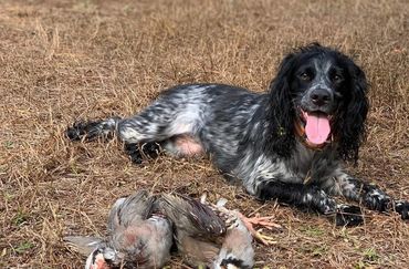 Jelly's pedigree doesn't have a who's who list of Champions behind her. She is a good old fashioned Georgia plantation bred girl. She is a Champion at heart! She is beautiful and smart. She is working towards her Rally title. She is currently bred to Opie due July 20, 2020. This litter is spoken for. She is retiring from motherhood following this litter and will enjoy a life of light duty!